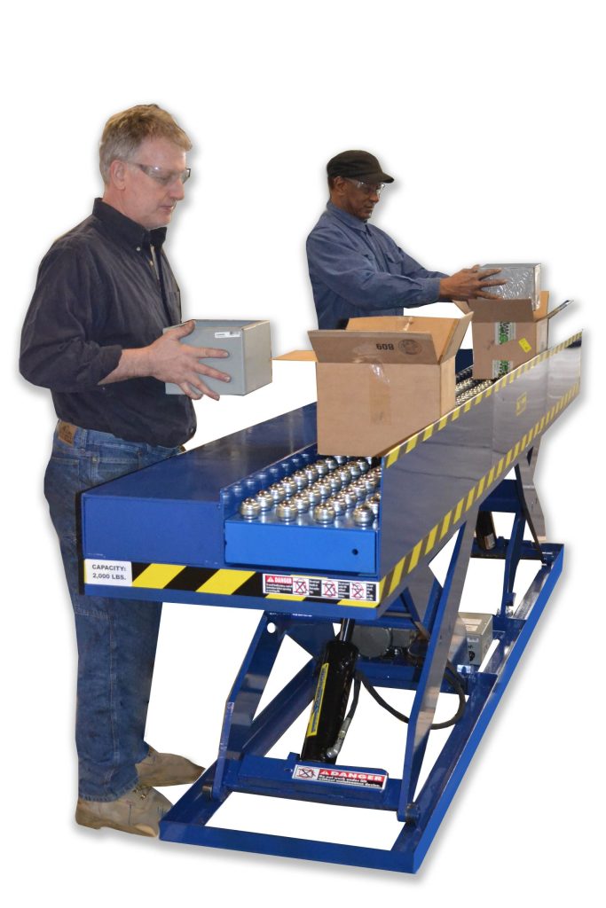 These versatile units are available with lift capacities to 6,000 lbs., and platform sizes up to 48" x 220", with up to 70 inches of lift available. They can also be fabricated as custom units when larger platform size and/or capacity is necessary. They are suitable for facilities final packing of product prior to shipment, staged assembly functions where a certain task is accomplished prior to sending the component down the line via the conveyor to another workstation.