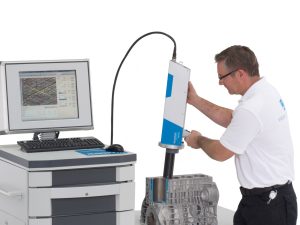 The Hommel-Etamic Toposcan is a system used for measuring the surface of cylinder bores larger then 60mm in diameter. The Toposcan is capable of automatically measuring the size of porosity and blow holes, stroke reversal radius, laser pocket structures, roughness of bore walls, torn and folded metal and cross-hatch angles. It can be used either for R&D tasks or in the production line.