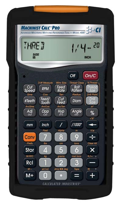 The Model 4087 Machinist Calc Pro from Calculated Industries is a machining math and reference tool.