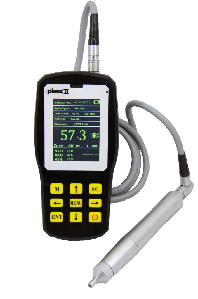 Phase II's PHT-6000 nondestructive, portable, ultrasonic hardness tester is suitable for small, large, flat, round, thick or thin workpieces. It can test soft metals, such as copper and brass, and hard metals while adhering to ASTM A1038-10 guidelines for portable hardness testing using the static ultrasonic contact impedance method.