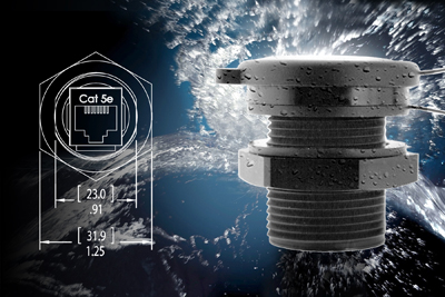 These port adapters have a RJ45, USB Type A, or USB Type B connector potted inside the plastic shell, and can easily be mounted to a cabinet through a 1" diameter hole. They are supplied with a cap tethered to the connecter via a TPE gasket that not only clutches the cap, but also works as a waterproof washer.