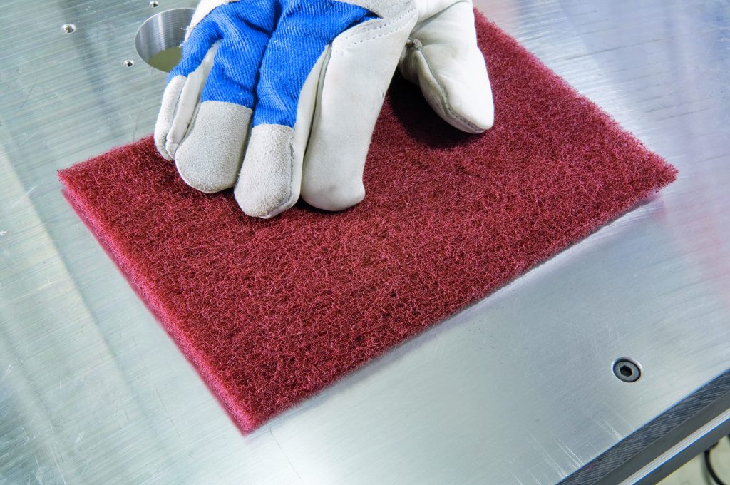 Maroon-colored general-purpose pads are the most widely used of all hand pads. Their aluminum oxide grain is noted for its toughness and durability on tasks such as cleaning, deburring, rust removal, blending and finishing.