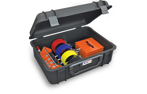 The compact kit accommodates load configurations up to 40' long and 34,000 lbs., and stores easily in an included waterproof wheeled case. Load placement is safely performed over nearly all flat surfaces with the use of compressed air and lightweight overlays.
