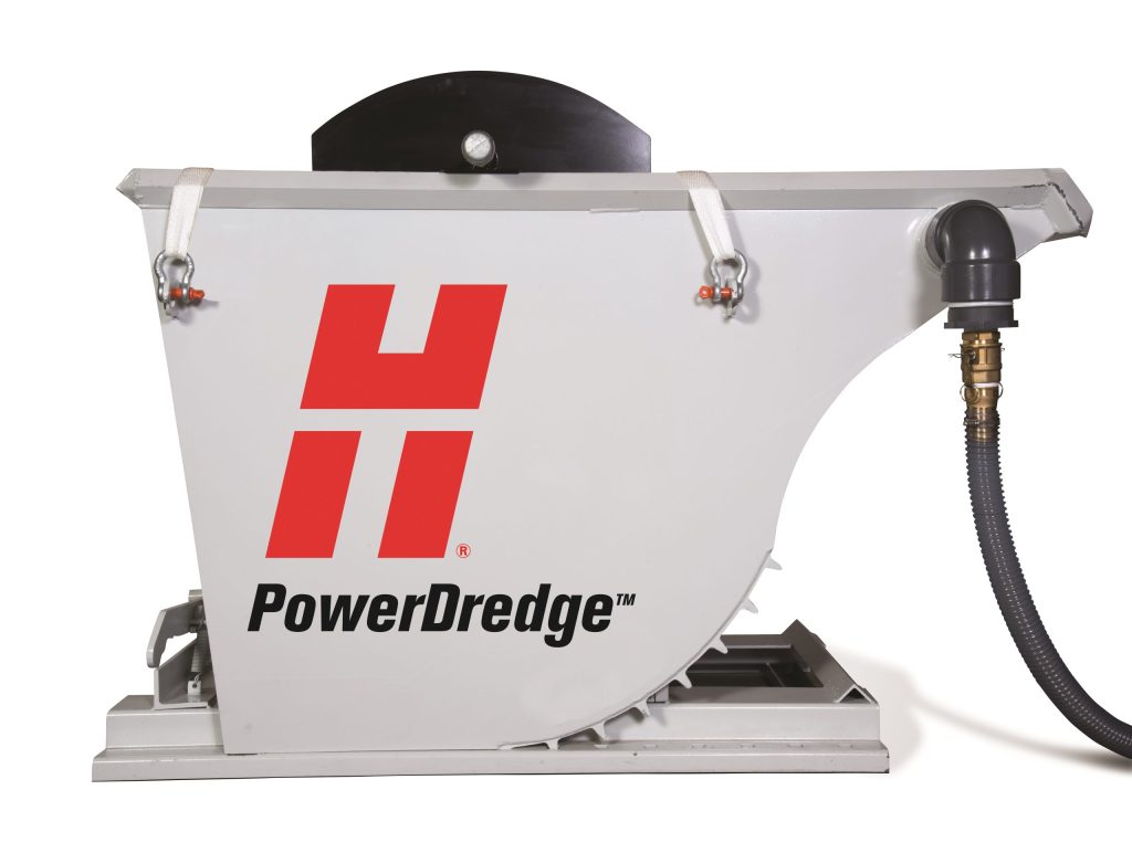 Hypertherm is shipping its PowerDredge waterjet abrasive-removal unit to customers around the world. The unit increases waterjet productivity and profitability by automating costly abrasive clean-outs. Instead of relying on manual labor to shovel or suck out used abrasive, the PowerDredge automatically collects and deposits abrasive into a large bag for quick recycling or disposal.