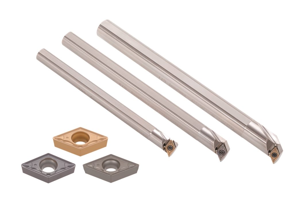 The Premium Internal Bar – DPMT series features a versatile –PS style chipbreaker with proven performance in a variety of operations, and three grades: T9215 CVD-coated grade for turning steel, NS9530 cermet grade for finish turning, and AH8015 PVD-coated grade for high temperature alloys. The new holder lineup covers working diameters ranging from 15 mm to 22 mm or from 0.6" to 0.87", available in special alloy steel shanks, as well as carbide shanks.