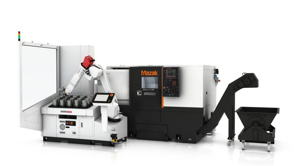 Mazak Corp. offers the high-performance (HP) configuration of its versatile QTU-350 turning center. The Kentucky-built machine can be paired with a RoboJob TA200 automation package to further boost the productivity of this simple, but innovative machine.