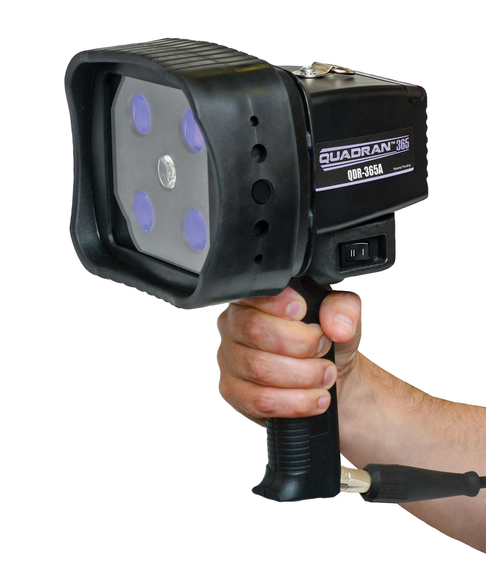 Spectroline's QUADRAN 365 Series multi-LED, dual-intensity, broad-beam UV-A (365 nm) inspection lamps are for a wide variety of NDT applications. All QUADRAN 365 lamps feature four ultra-high-flux UV-A LEDs for fluorescent inspection, plus a white light LED for flaw location.