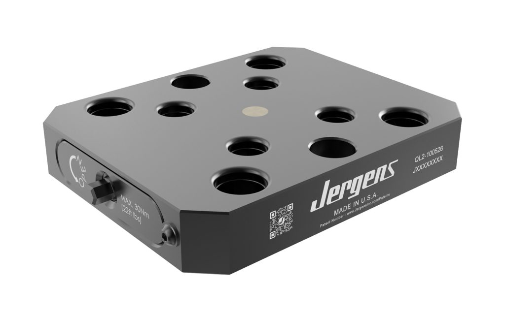 The QL2 combination pallet is the newest addition to Jergens' Quick-Loc line of quick-change products, with a new combination pallet that offers both 96mm and 52mm hole patterns in a single unit.