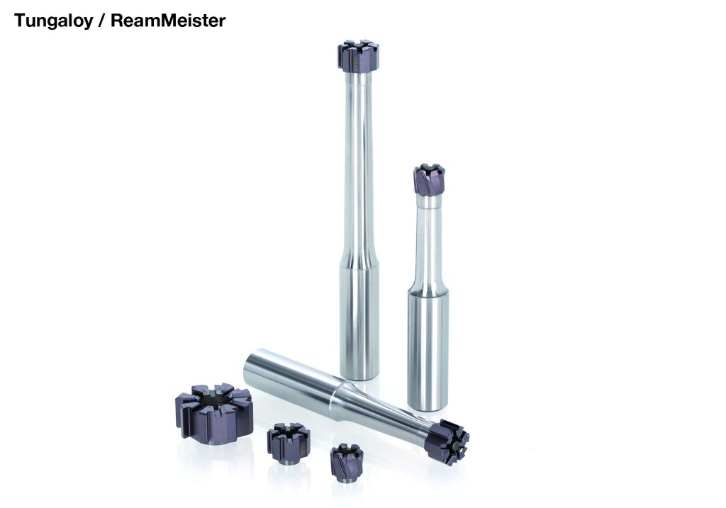 Tungaloy is introducing ReamMeister, an interchangeable head reamer system. ReamMeister is a high precision, interchangeable head reaming system capable of reaming holes in an H7 diameter tolerance range. The ReamMeister tools meet the requirements of high accuracy reaming because the head geometry's diameter and runout accuracy is strictly controlled when being finished by precise grinding and the taper-and-face contact connection guarantees high concentricity within very close limits.