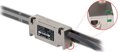 The quality of the incremental signals is clarified by shades of color as well as the blinking of the LED. This makes a very detailed gradation of signal quality possible. The reference mark signal's compliance to mounting tolerances is shown by a pass/fail display. The status display of the reference mark signal is switched off at velocities over approx. 150mm/s in order to prevent permanent blinking.