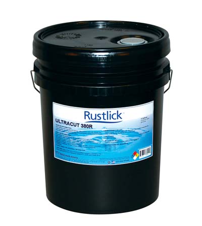 Ultracut 380R contains no DCHA (dicyclohexamine), chlorine, boron, phenol, nitrites, triazines, sulfur, copper, or SARA 313 reportable chemistry and it is easy to recycle or dispose of with conventional techniques and equipment. Rustlick Ultracut 380R is available in 5 or 55 gallon containers and is recommended for ferrous and nonferrous metals, aluminum, titanium, brass, bronze, copper, and other high-nickel alloys.