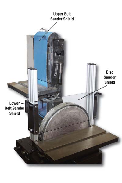 Rockford Systems Inc. offers high-quality, adjustable belt sander and disc sander shields. These shields place a barrier between an operator and flying debris generated at the point of operation. They fasten directly to the machine using 1" x 2" extruded aluminum with mounting hardware included.