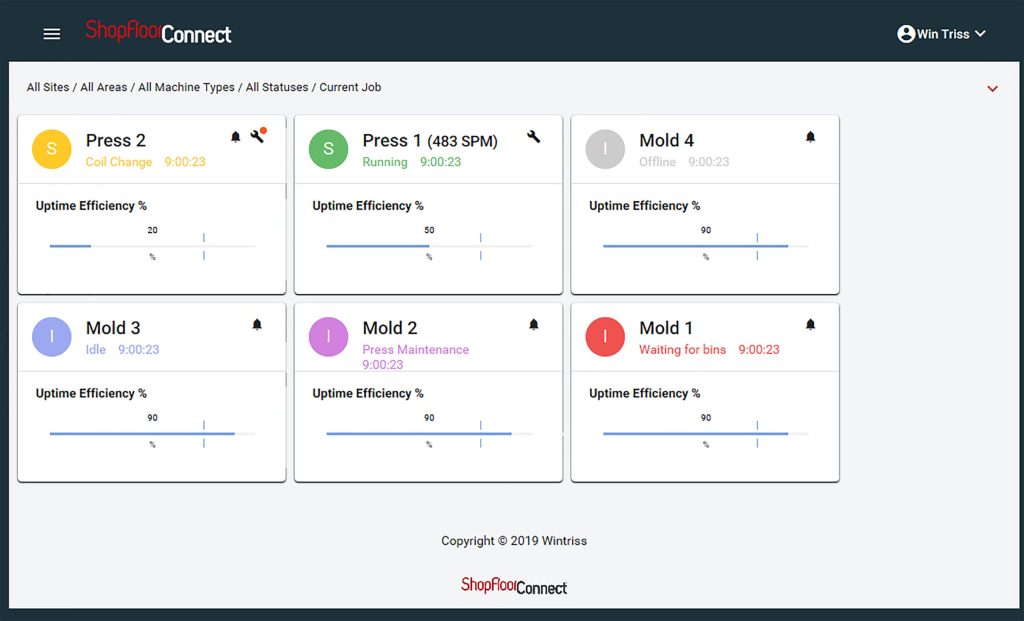Wintriss Controls Group has announced ShopFloorConnect 6.0 OEE and Shop Floor Data Collection Software. ShopFloorConnect gathers production data from every machine in the factory, displays the Key Performance Indicators (KPIs) in real-time and produces detailed analytics, including comprehensive OEE reports in a variety of formats. The software can significantly increase manufacturing capacity and profitability by identifying and quantifying excessive production losses and bottlenecks.