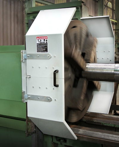Danray Products LLC offers 52" and 62" steel lathe chuck shields for lathes or similar machines. These heavy-duty 12-gauge steel lathe chuck shields serve two basic functions: (1) they provide a safeguard between individuals and point-of-operation or rotating hazards, and (2) they protect individuals from flying chips, sparks, coolant, lubricant, and other particles.