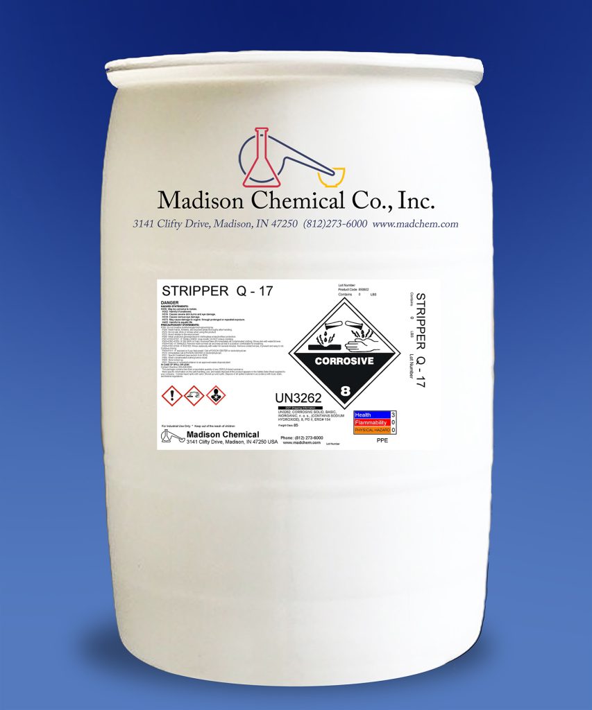 Madison Chemical introduces Stripper Q-17, a premium, powdered, heavy-duty alkaline paint stripper for ferrous metals. This versatile product can also remove light rust and coatings such as varnish, lacquer, alkyd and acrylic.