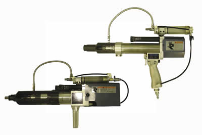 Sugino Corp.'s Pneucon Selfeeder portable pneumatic drilling units are for streamlining drilling applications on large wing and fuselage assemblies. The units provide a TIR of less than 0.0006" and provide 0.0008" repeatability on depths. The rapid approach of the drill is slowed when the primary control feed rate regulator is engaged prior to entering the part. As the drill approaches its preset depth, the secondary control feed regulator further slows the drill to virtually eliminate burrs on breakthrough, according to the company. The units operate with positive air pressure in forward and reverse.