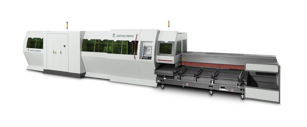 The LT722D, available with a 2.5kW Co2 laser source, can cut mild steel, stainless steel, and aluminum (some alloys). The LT Fiber EVO, available with a 2 or 3kW fiber laser, can also cut these materials as well as copper, brass and galvanized steel. Both versions handle bar weights up to 10.2 lb/ft (15 kg/m) and loading lengths of either 21' or 28' (6.5 or 8.5m) and unloading lengths of 11.5", 15" or 21" (3.5, 4.5 or 6.5m). Additionally, on both versions, the bundle loader automatically adjusts from 0.5"- 6.0" (12 – 152mm) when switching from one tube shape to another. They also feature dynamic nesting for optimization of material usage and minimization of scrap.