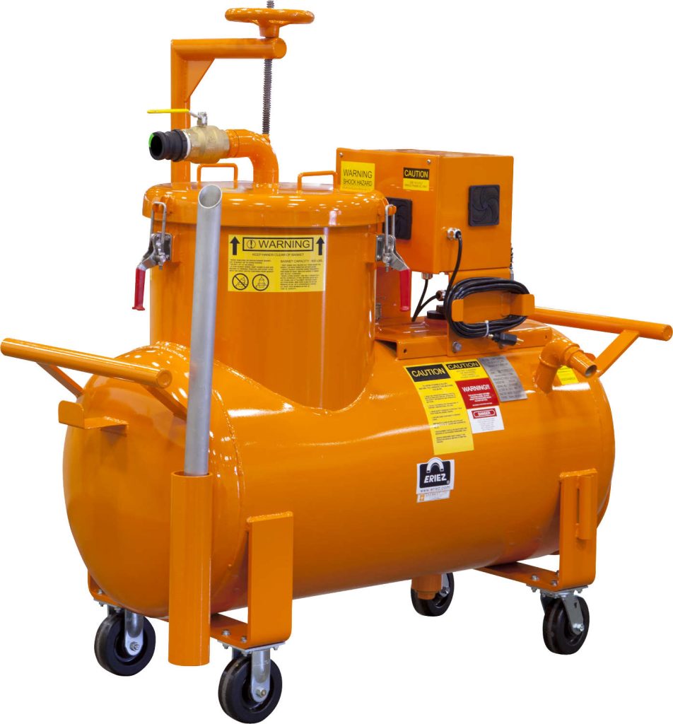 All Eriez sump cleaners 65 gallons and above feature new state-of the-art easy lift chip basket lids. Milton explains, "There is no longer a need to manually lift the lid off the unit and place it on the ground to remove the basket. This means the elimination of lifting and pinch points, reducing potential for injuries to operators."