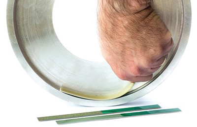 "Super Flex" files are extremely long, measuring 7.08" (180mm) in length, 0.50" (12.7mm) in width and are extra flexible for use in narrow slots where access is difficult. Despite the thinness, they are strong, according to the company, because they are constructed of metal. Plated length of Super Flex is 1.97" (50mm), and they are available in nine models with thicknesses (after plating) ranging from 0.006" (0.17mm) to 0.035" (0.9mm) and grit sizes of 1200 (two models), 500/600 (two models), 270/325 (two models), 170/200 (two models) and 120/140 (one model).