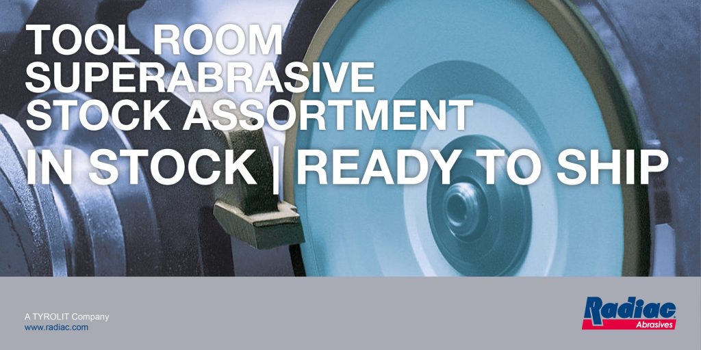 Radiac Abrasives Inc. announces a new superabrasive stocking program, including a Tool Room superabrasive assortment and VNX2 wheels, which are in stock and available to ship within 48 hours.