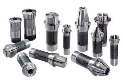 Hardinge stocks headstock collets, pickoff collets and guide bushings in many styles and sizes. Their standard round guide bushings are carbide-lined to keep the stock clean and unmarked. Hardened steel or Meehanite-lined bushings can be made for certain stock that is not compatible with carbide. Standard extended-nose headstock and emergency collets feature added nose length (straight or tapered) for doing pickoff work or to compensate for tooling interference. Emergency collets are handy to have in your tool drawer and can be machined to the desired bore size right in your shop to accommodate small runs or get you by in a pinch until your desired size collet arrives.