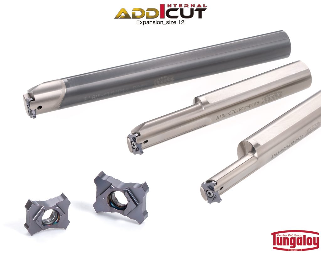 Tungaloy has expanded its AddInternalCut groove turning tool series to include new TCIG12 inserts as well as additional TCIG10 inserts that allow a maximum groove width of 3.0 millimeters (.118 inches) in bores as small as 10.5 millimeter (.413 inch) diameter.