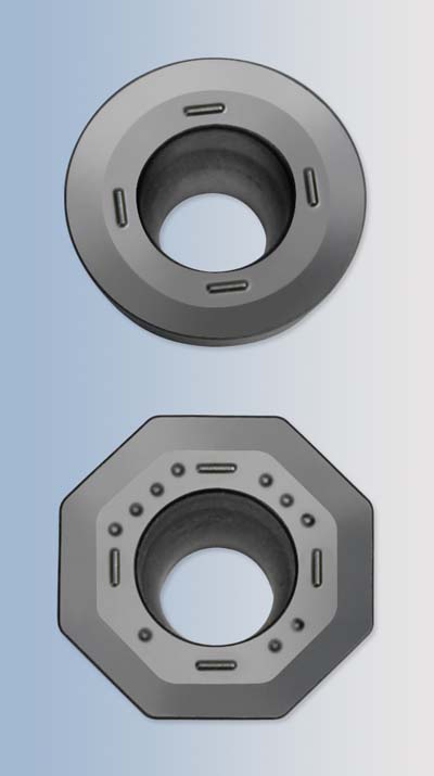 Dapra Corp. has expanded its Toroid Rhino-Carb CNC-pressed insert line with a new cutting edge geometry. Available for round and octagonal inserts, the new neutral ("N") cutting edge provides smoother cutting action for steels, irons and many stainless steels when compared to Dapra's stronger T-Land insert edge, according to the company.