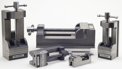 Available in a range of sizes from 1-½ inches to 6 inches, they feature replaceable jaws and a base and bed parallel to 0.001 inch. The center of the base is open for holding operations and all vise models can be mounted on the base, either side or placed on end for general use. Made in the USA, the drill press vises come with a lifetime guarantee.