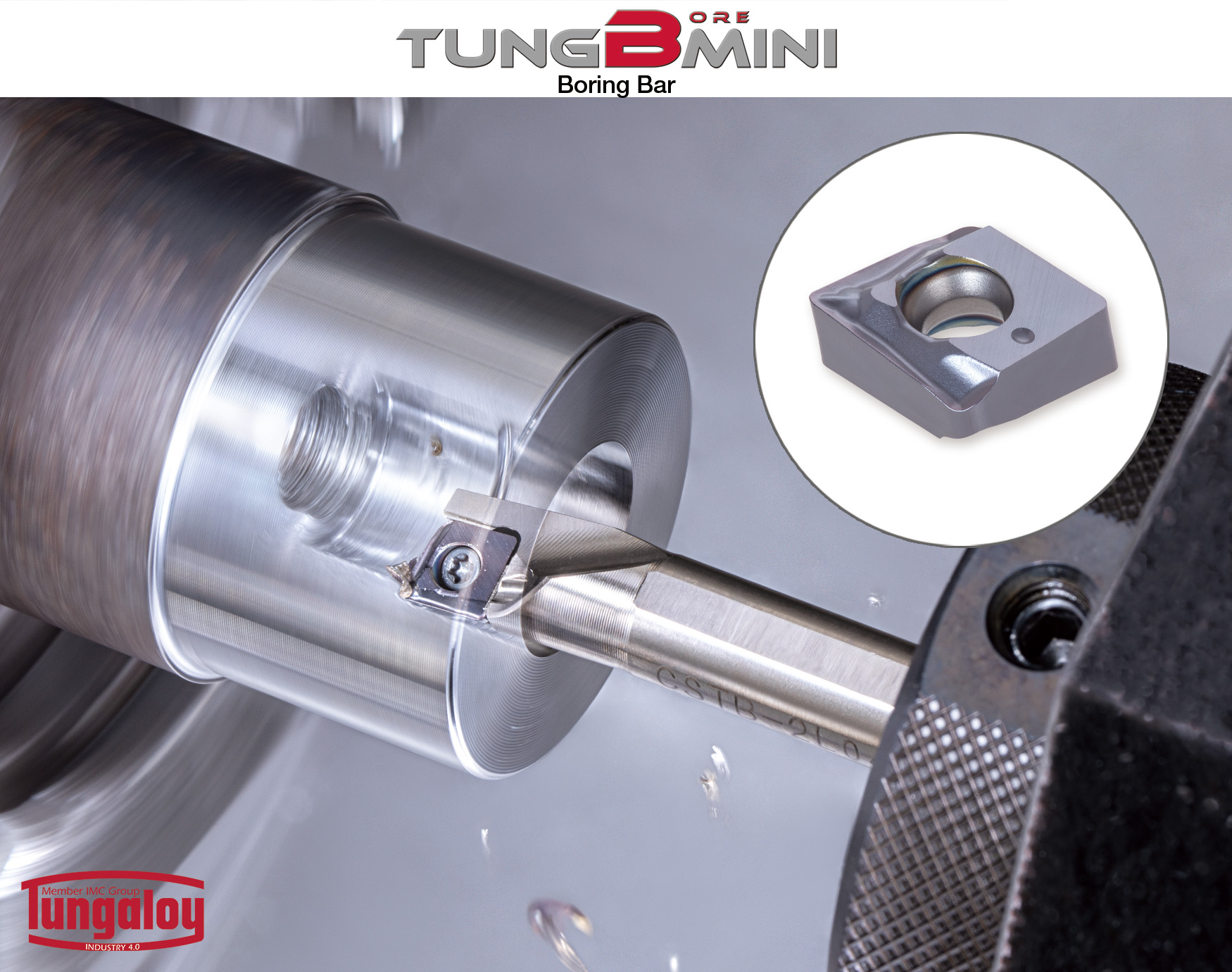 TungBore-Mini is a multifunctional drilling and turning tool line that integrates the capabilities of drilling, OD, and ID turning tools. Its unique XOMU insert features an innovative geometry incorporating a large inclination angle on the cutting edge that produces light cutting, compared with standard ISO positive turning inserts that are typically used for ID turning or boring operations. In addition, TungBore-Mini's insert and pocket have a dovetail interlocking design providing better insert clamping and stability than standard screw-down insert clamping, ensuring process security during various applications.