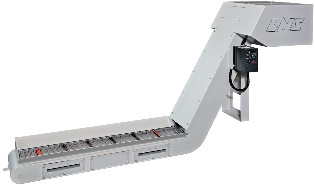 Enhanced LNS Turbo MH140 filtering chip conveyor is ideal for sliding headstock and multi-tasking machining centers that produce mixed chips of any size and geometry from a variety of materials including aluminum, brass, cast iron, and more.