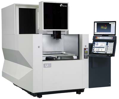 The U3 and U6 offer X-, Y- and Z-axis travels of 370mm by 270mm by 220mm and 650mm by 450mm by 420mm respectively. The U3 will accommodate a maximum workpiece size of 770mm by 590mm by 220mm with a payload of 1,322 lbs., while the U6 holds sizes up to 1,000mm by 800mm by 400mm with a maximum payload of 3,307 lbs. Other features of the U3 and U6 include reduced wire-consumption rates, dual digitally-controlled flush pumps and a choice of two wire-guide configurations—conventional round or Split V guide system—to accommodate any material types and flushing conditions from 0.004"- to 0.012"-dia. wire (0.1 to 0.3mm in diameter). An extensive cutting condition library provides optimized conditions for standard hard brass wires, high-speed coated wires and high-taper soft wires. The depth and versatility of the entire cutting condition library ensure that all applications can be machined at optimum productive levels.