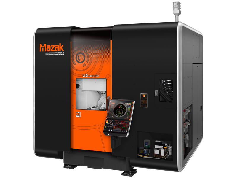 Mazak pairs the UD-400/5X with its Mazatrol SmoothX CNC for a high degree of precision and performance, especially for machining dies and molds. The control's suite of Smooth Technology functions includes variable acceleration control to allow operators to utilize the high-speed linear axes when possible, seamless corner control to optimize acceleration and deceleration around corners and active vibration control to minimize vibrations at the program level. All of these functions may be combined to significantly reduce cycle times and boost part accuracy.