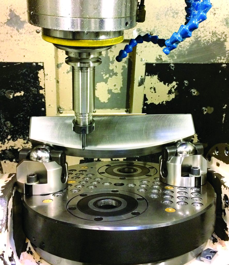 BIG KAISER is accelerating workholding technology to match the level of the ever-more popular and accessible multiaxis machining. The UNIFLEX system is composed of a clamping ball and collar that are attached to the underside of a part or fixture. The clamping ball is a hardened steel ball of the same type found in heavy-duty industrial bearings. This material prevents peening or denting of its surface with normal use.
