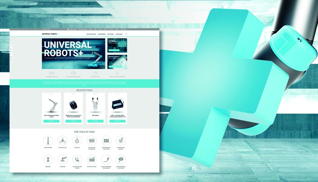 With Universal Robots+, the company creates its own eco-system enabling applications revolving around the collaborative robot arms UR3, UR5 and UR10 to be developed and showcased. The so-called URCaps, accessory components that extend the UR robots' capabilities, can be customized hardware components, software plug-ins, or a combination of both. The aim of Universal Robots+ is to reduce implementation periods, increase user comfort and reduce costs for all parties involved.