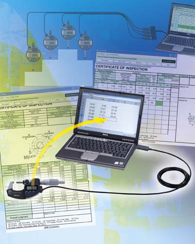 The new design negates the need for two cables, lowering overall costs by as much as 32 percent. When connected to a PC's USB port, the USB Input Tool is automatically recognized as an HID (Human Interface Device) keyboard device, a standard Windows driver. No special software is required. A USB keyboard signal converter translates Digimatic display values to keyboard signals. This enables the direct inputting of data into the cells of off-the-shelf spreadsheet software, such as Excel.