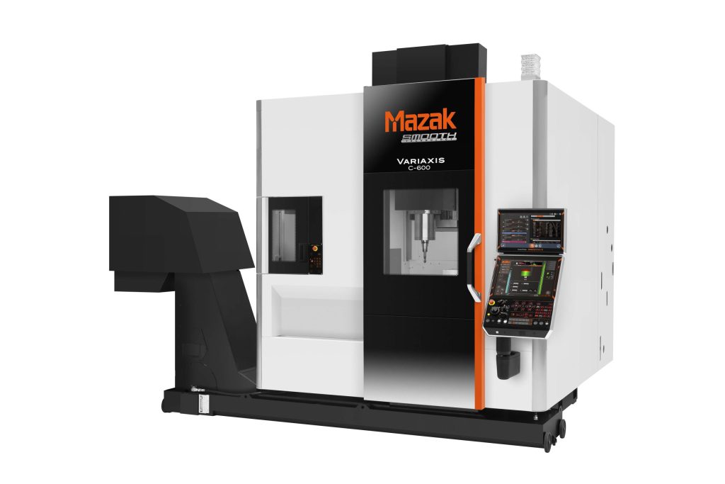Introduced to the U.S. market, the Variaxis C-600 from Mazak Corp. is an advanced 5-axis solution with a wide variety of optional features, automation-ready machine enclosure, operator-friendly ergonomic design and significantly improved productivity. This all-new machine leverages 40% faster rapid traverse rates, 4.5 second chip-to-chip toolchanger/" data-glossary-id="142091" data-glossary-teaser="Mechanism typically included in a machining center that, on the appropriate command, removes one cutting tool from the spindle nose and replaces it with another. The changer restor…" title="Mechanism typically included in a machining center that, on the appropriate command, removes one cutting tool from the spindle nose and replaces it with another. The changer restor…" aria-label="Glossary: automatic toolchanger">automatic toolchanger, double-ended tilting table and robust C-frame construction for shorter noncut times and faster cycle times.