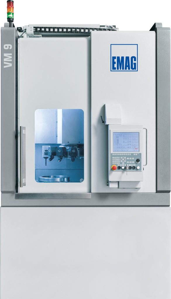 With the new VM 9 modular turning machine, EMAG has introduced a platform that covers a broad spectrum of applications thanks to the combined turning, milling and drilling technologies and intelligent machine design. The highly accessible machining area and workpiece spindle fitted at the bottom ensure short tooling times and maximum flexibility in the production of workpieces in small series.