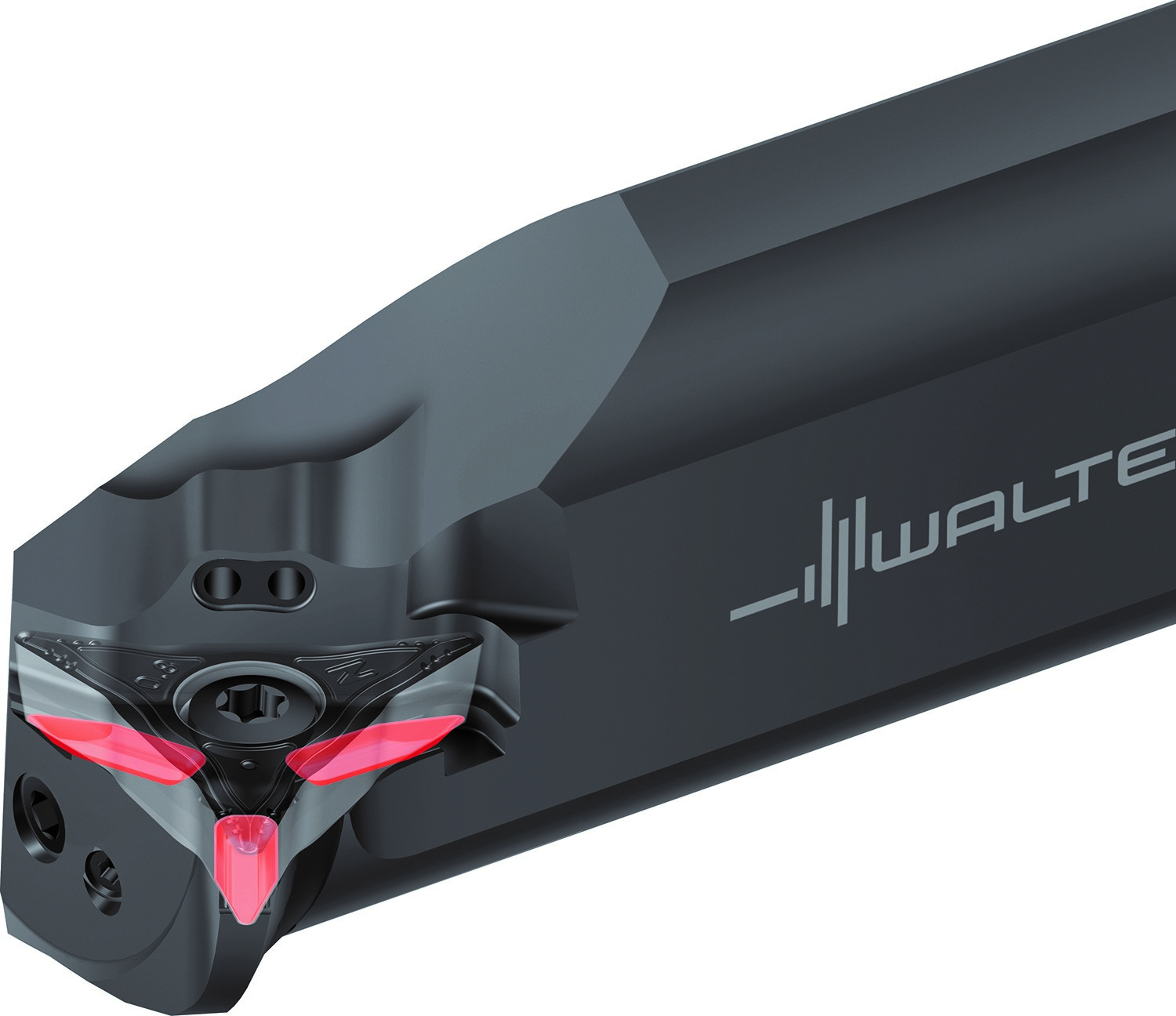 Waukesha, WI—Walter has introduced the W1211/W1210 copy turning system for boring bars, imparting a higher level of dimensional stability and indexing accuracy to internal machining, including profiling (copy turning), facing, and axial grooving. These boring bars and indexable inserts with Walter Lock (WL) positive engagement successfully combat the high forces in variable directions that occur when internal profiling applications with V-style (ISO-V, 35° diamond shaped) inserts.
