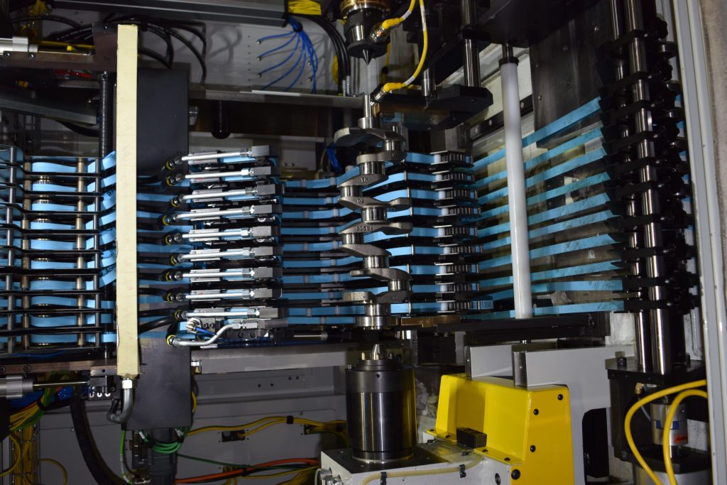 The flexibility of the machine to automatically position any of its 11 pairs of arms in any position to accommodate a range of crankshaft sizes will save the automaker time during changeover and avoid the need to retool the machine. The machine will permit the automaker to produce any crankshaft in its matrix of part dimensions, including variation on bearing pitch (main bearing to pin bearing spacing), currently and into the future.