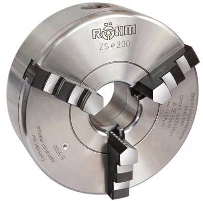 The ZG and ZS (pictured) manual lathe chucks from Röhm Products of America feature enhanced designs that include control edges for adjustability, safety adapters to regulate force and spray water rims that protect machine tool spindles.