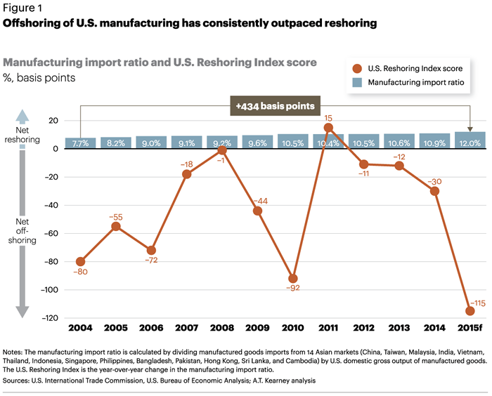 While data used to calculate the 2015 A.T. Kearney U.S. Reshoring Index contradicts reports of a reshoring trend for U.S. manufacturing, the index itself should not be construed as opposition to reshoring efforts, according to A.T. Kearney, the Chicago-based global management consulting firm that publishes the index.