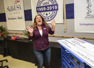 Terry Iverson, author of Finding America's Greatest Champion, discusses manufacturing careers with a millennial who attended the Fall 2019 meeting of the United States Cutting Tool Institute.