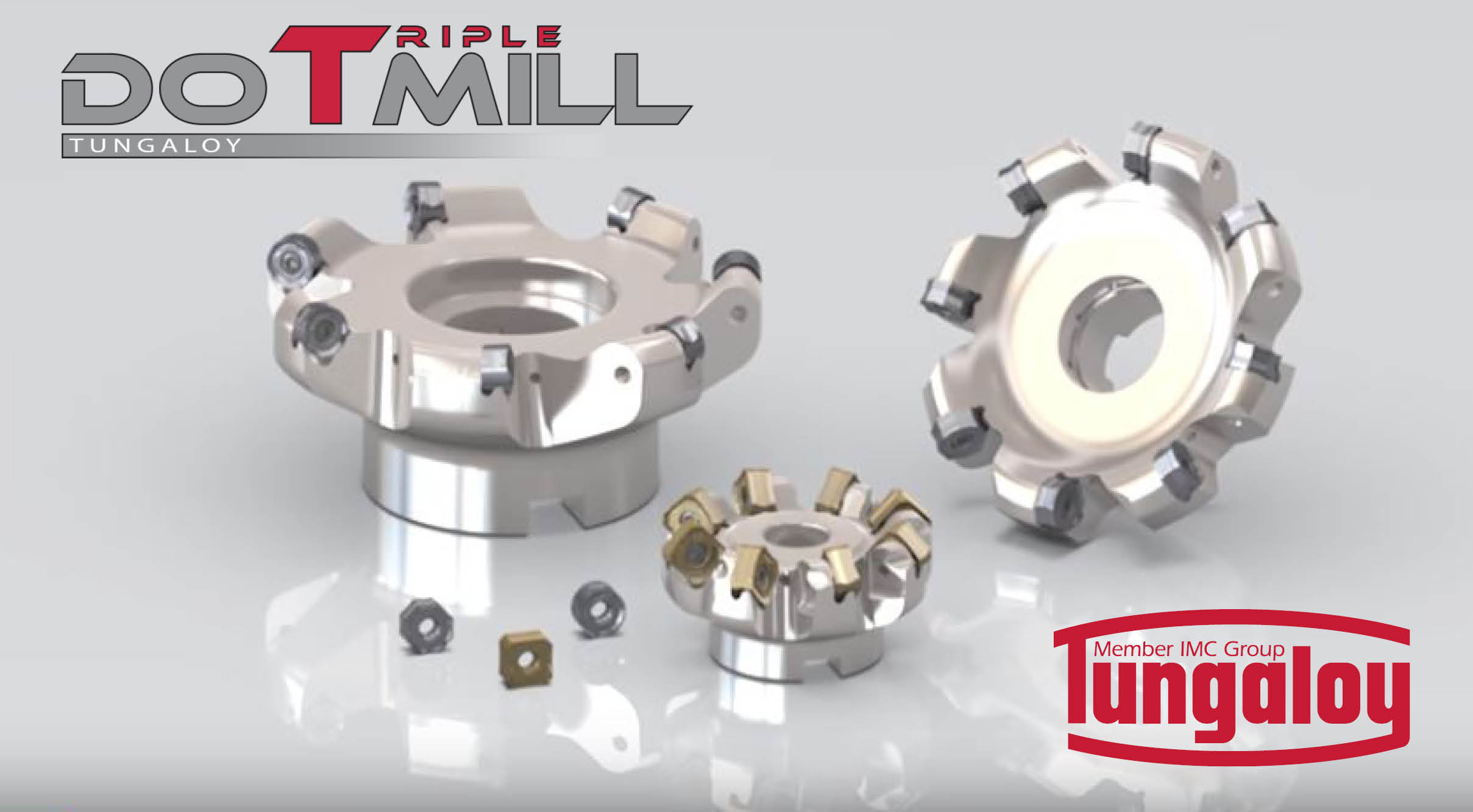 DoTriple-Mill is Tungaloy's face milling cutter featuring a dovetail clamping system that dramatically reduces insert lift up and excessive shear force imposed on the screws during heavy duty milling.