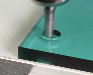 A Datron high-speed CNC milling machine creates a microfluidic support plate, made of highly transparent acrylic glass, that includes microchannels.