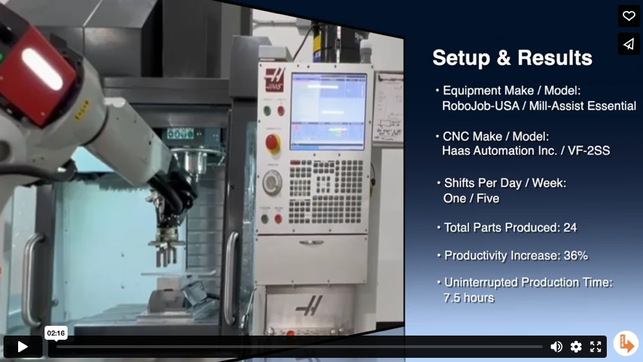For the 16th episode of CTE's Robotics Results video series, Fusion | RoboJob-USA President Craig Zoberis filmed an automation setup that helped a shop increase productivity by 36% using a RoboJob-USA Mill-Assist Essential with a Haas Automation Inc. VF-2SS.
