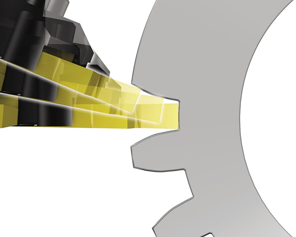 Modern indexable-insert technology makes this new gear milling method possible because the positive geometry on each insert generates low cutting forces, enabling a high level of cutting data to be used while ensuring accurate profiles for close tolerance ranges. With involute milling, gear teeth with quality level 6, DIN 3962 or better can be achieved. Moreover, surface finishes finer than 3µm Rz can be achieved through the correct application of tools in sufficiently rigid machines.