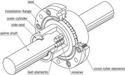 NB Corp.'s rotary ball spline has a nut that rolls on the ball spline shaft making it capable of both linear and rotary motion and provides sub-millimeter accuracy every time. There is a lot of torque acting on a robotic arm. A ball spline's forte is the transfer of torque. In addition, it can even be customized so cabling can run the length of the robotic arm by using a hollow shaft ball spline. For greater load rating without increasing the size of the machine, you can specify a ball spline with cross rollers as opposed to balls in the rotary motion.